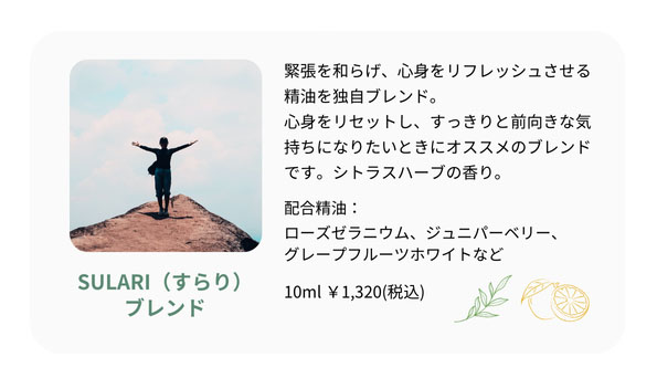 ローズ様の香りのゲラニオールと爽やかなシトロネロール、甘さのあるリナロールを含有しているため、ローズに近い香りが期待できます。